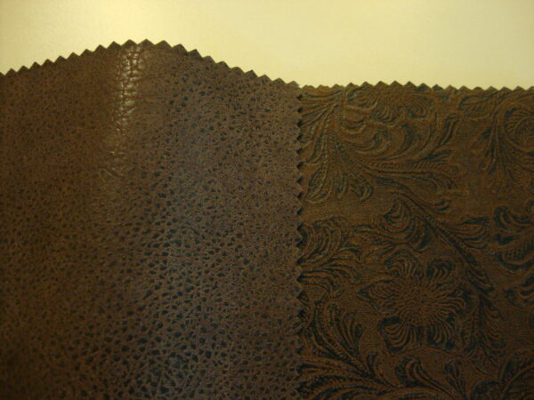 56-60″ wide 57% Polyurethane/25% Polyester/8% Viscose-Beautiful rich floral print a designer pleather perfect for upholstery, garments. Would make a fabulous bag. Easy to sew with, caution with pressing. Test for temperature, use a press cloth or iron sole plate