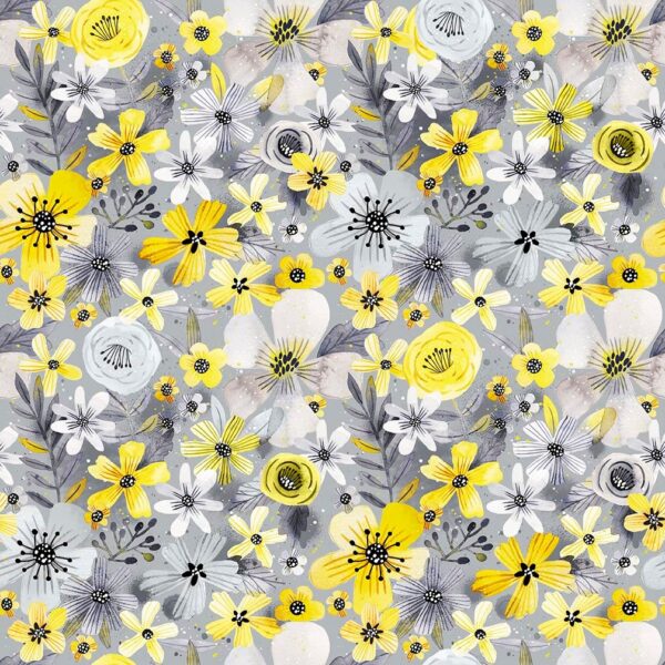 Gorgeous florals in a bold palette of tonal grays, sun-washed yellows, crip white, and deep black are center stage in this strikingly stylish for quilting, fashion sewing, and much more.