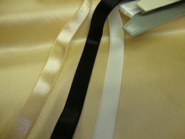 3/8″ & 3/4″ wide Plush strapping elastic elastic with both edges smooth is call Strapping elastic use for bras and bra stretch straps.